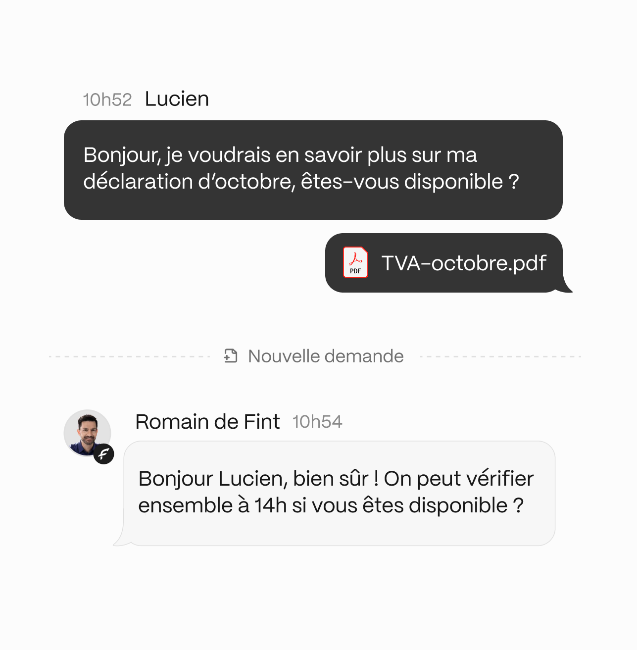 Avec Fint, vous avez un expert-comptable dédié qui s’occupe réellement de vos comptes, vérifie vos déclarations et vous conseille. Vous évitez les erreurs et gagnez du temps.