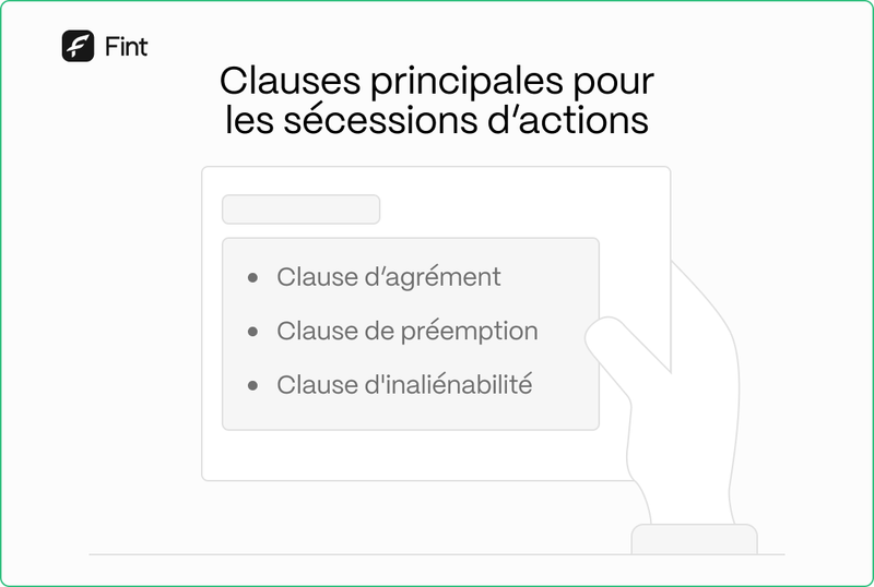 - La clause d'agrément : Elle impose qu'un nouvel acquéreur d'actions soit approuvé par les autres associés, souvent à une majorité définie. Cela permet de contrôler qui entre dans le capital.