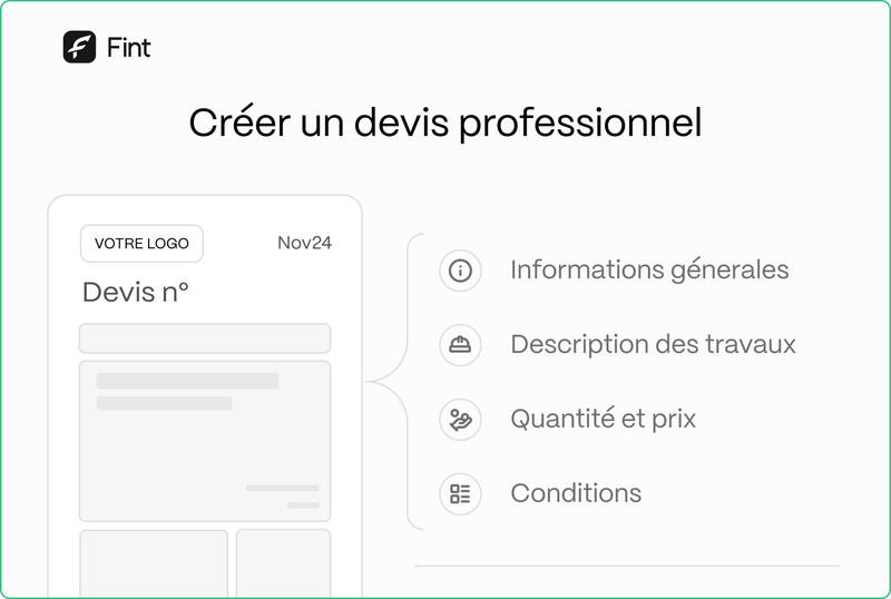 Un devis clair et détaillé évite les malentendus. Il doit indiquer vos coordonnées, celles du client, la description des travaux, quantités, prix unitaires, montant HT, taux de TVA, délais et conditions. Au-delà de 150 €, le devis est obligatoire. Un devis soigné renforce votre crédibilité et protège les deux parties.