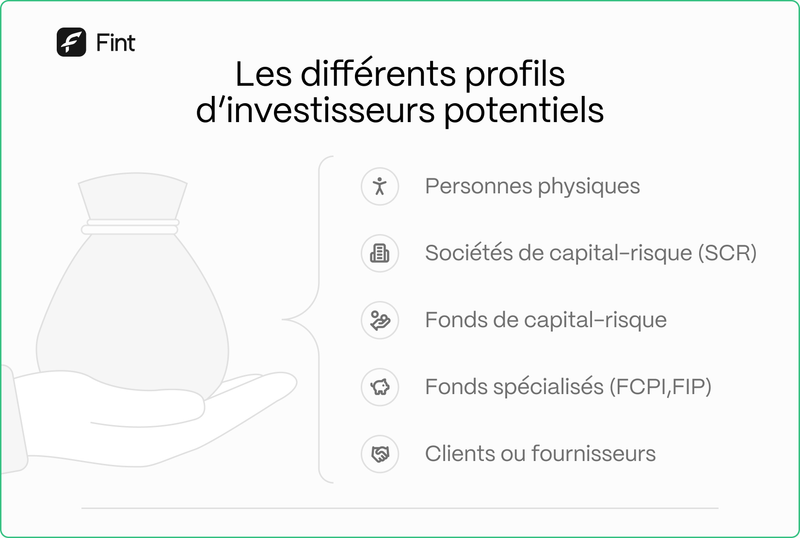 La prise de participation attire une grande variété d'acteurs. Il est important d'identifier ces profils pour savoir à qui s'adresser ou qui pourrait se présenter à vous.