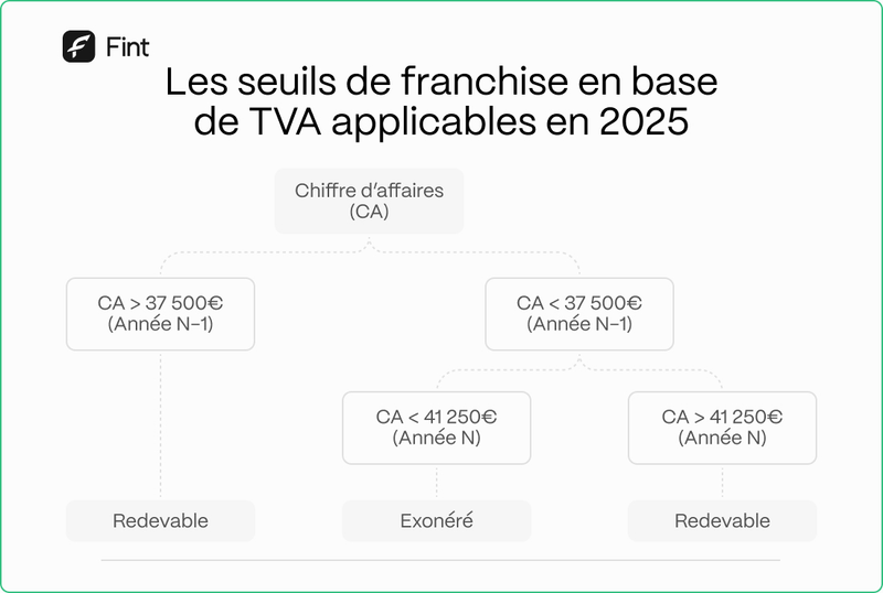 - Si votre chiffre d'affaires de l'année N-1 était supérieur à 37 500 € : vous devenez redevable de la TVA dès le 1er janvier de l'année N (2025 dans ce cas) pour l'ensemble de vos prestations soumises à TVA. Il est donc primordial de suivre attentivement vos recettes de l'année précédente pour anticiper cette situation.